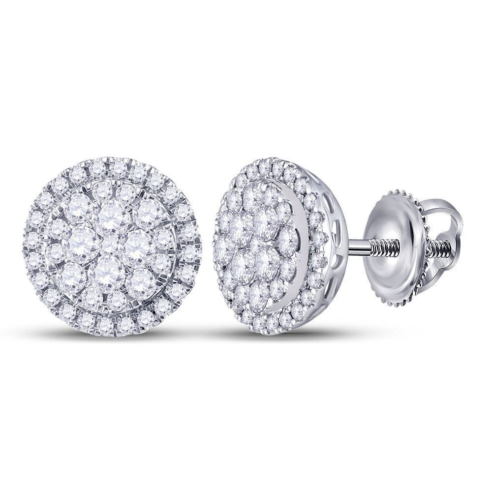 14kt White Gold Womens Round Diamond Halo Cluster Earrings 1.00 Cttw