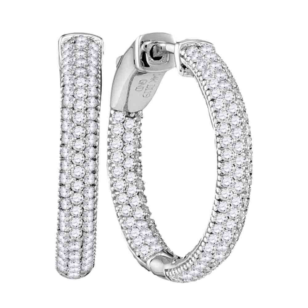 REF-149H9W ---- 1 CTW Round Diamond Inside Outside Hoop Earrings 14kt White Gold