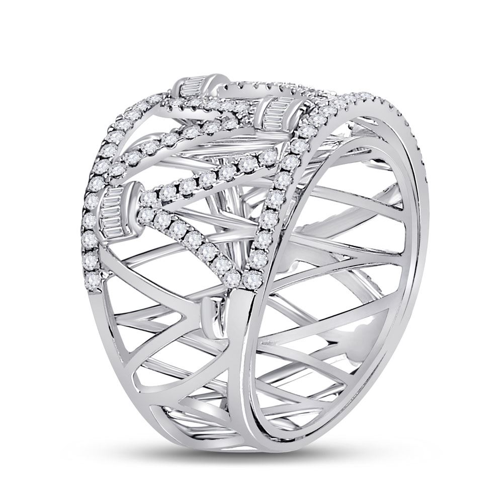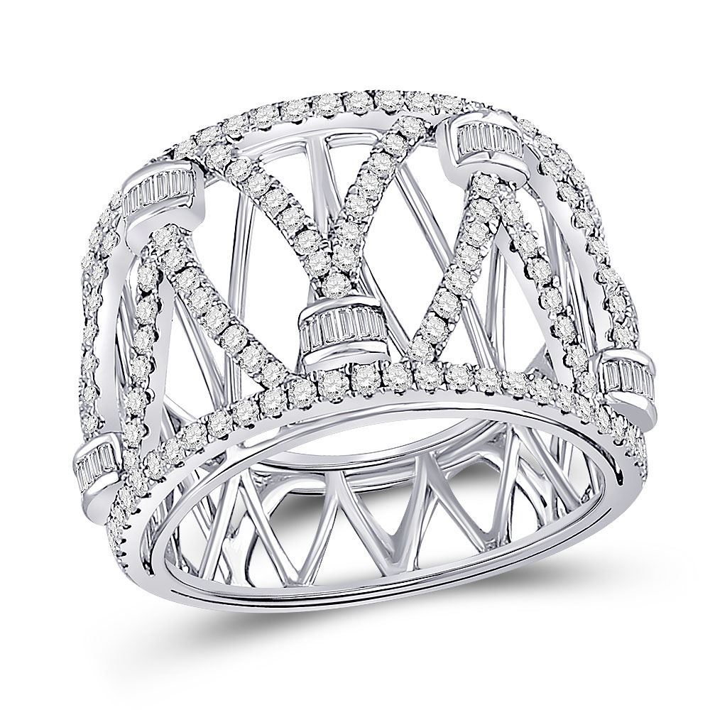 14kt White Gold Womens Round Diamond Modern Fashion Band Ring 1.00 Cttw