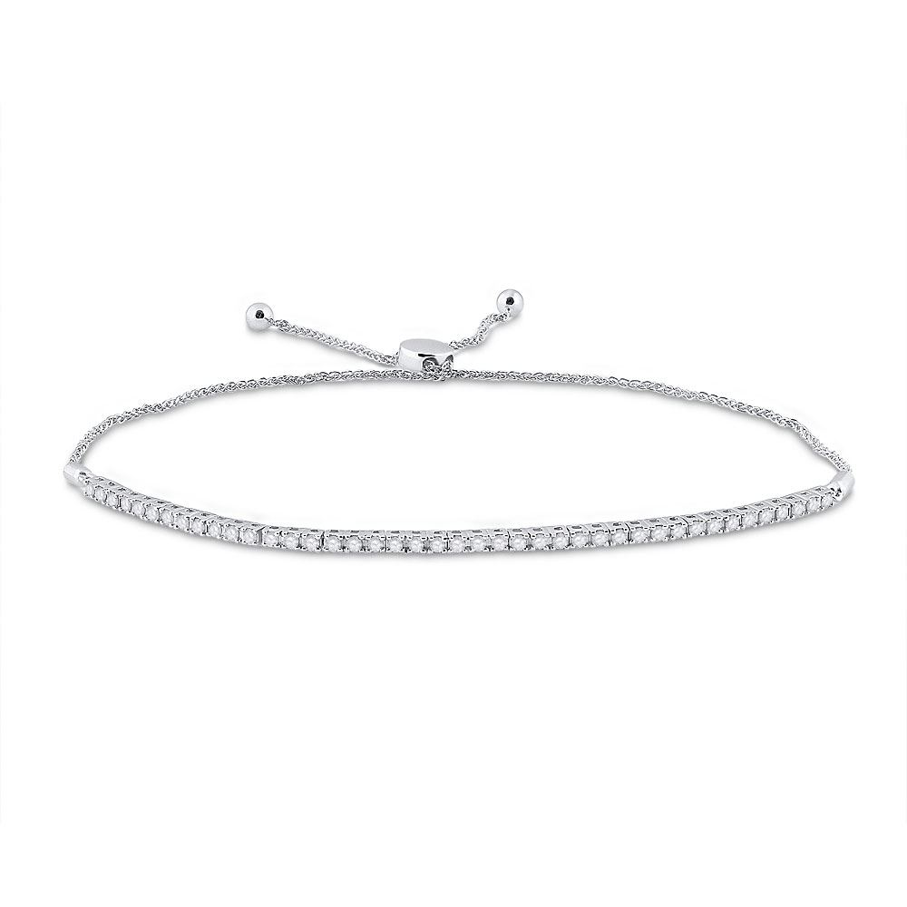 10kt White Gold Womens Round Diamond Single Row Bolo Bracelet 1.00 Cttw