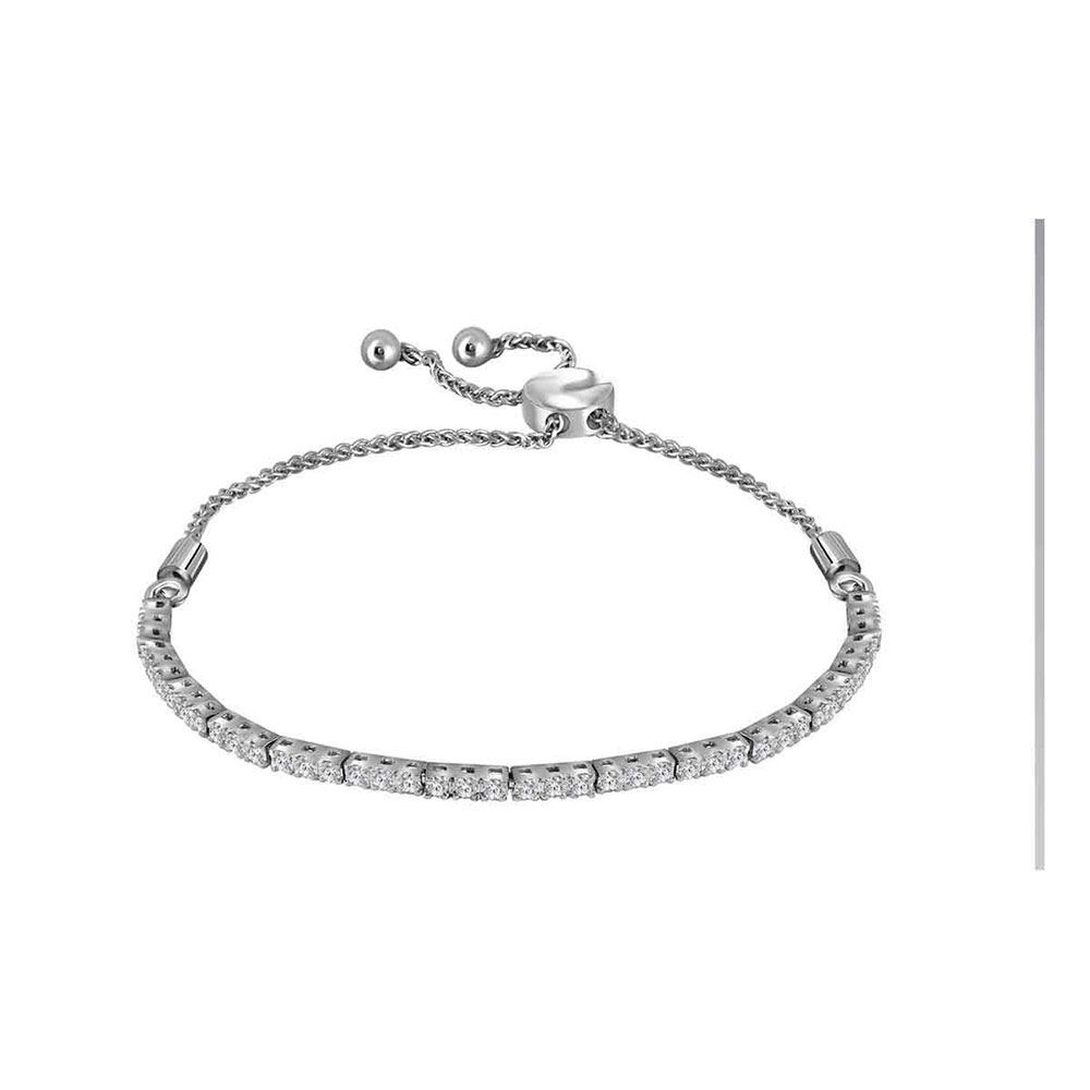 10kt White Gold Womens Round Diamond Single Row Bolo Bracelet 1.00 Cttw