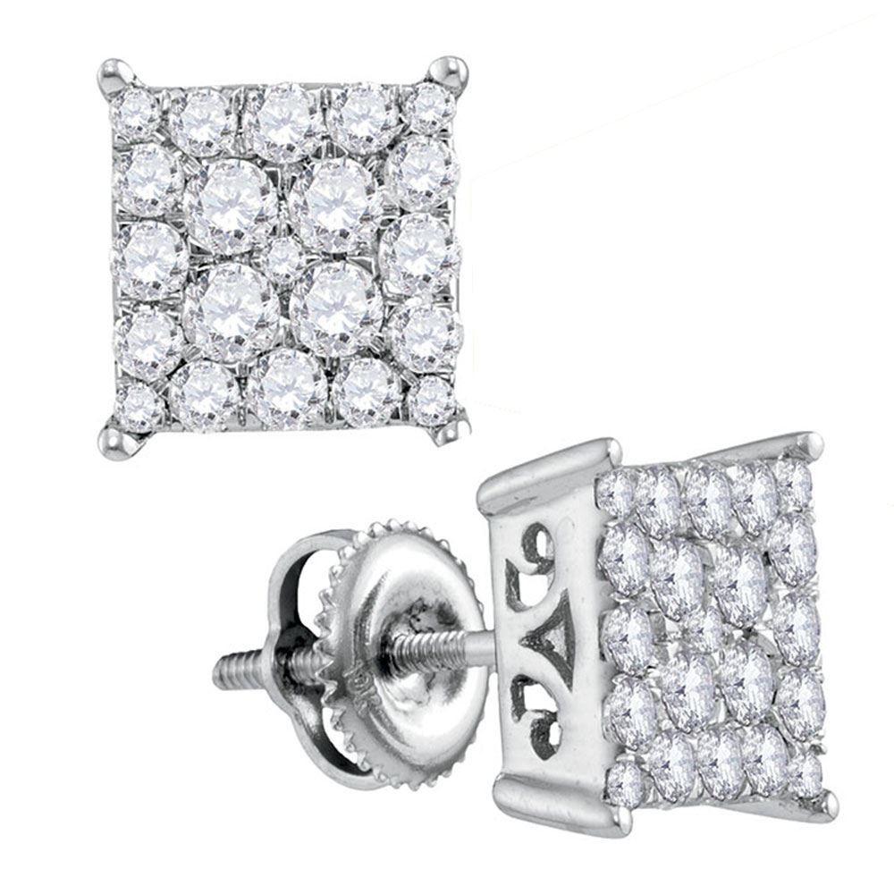 10kt White Gold Womens Round Diamond Square Cluster Stud Earrings 1.00 Cttw