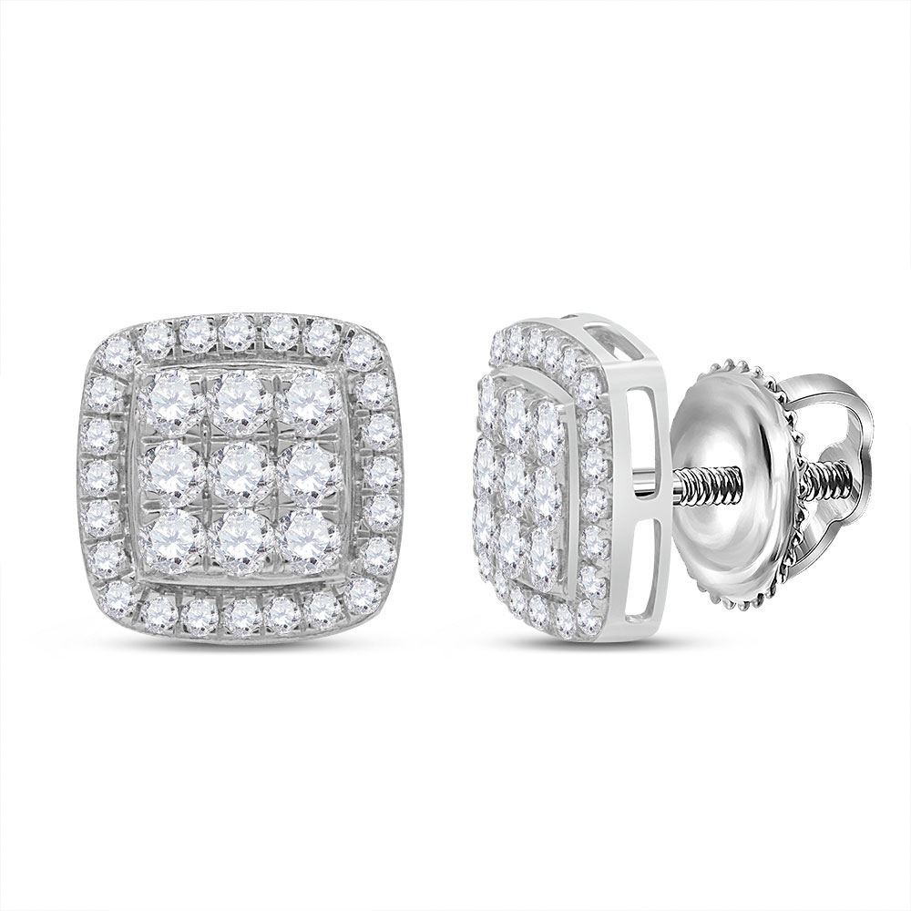 10kt White Gold Womens Round Diamond Square Cluster Screwback Earrings 1.00 Cttw