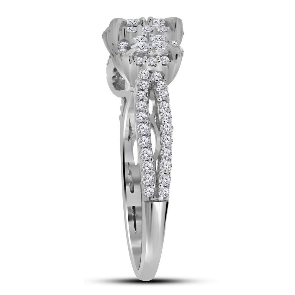 10kt White Gold Womens Round Diamond Triple Cluster Bridal Wedding Engagement Ring 1.00 Cttw