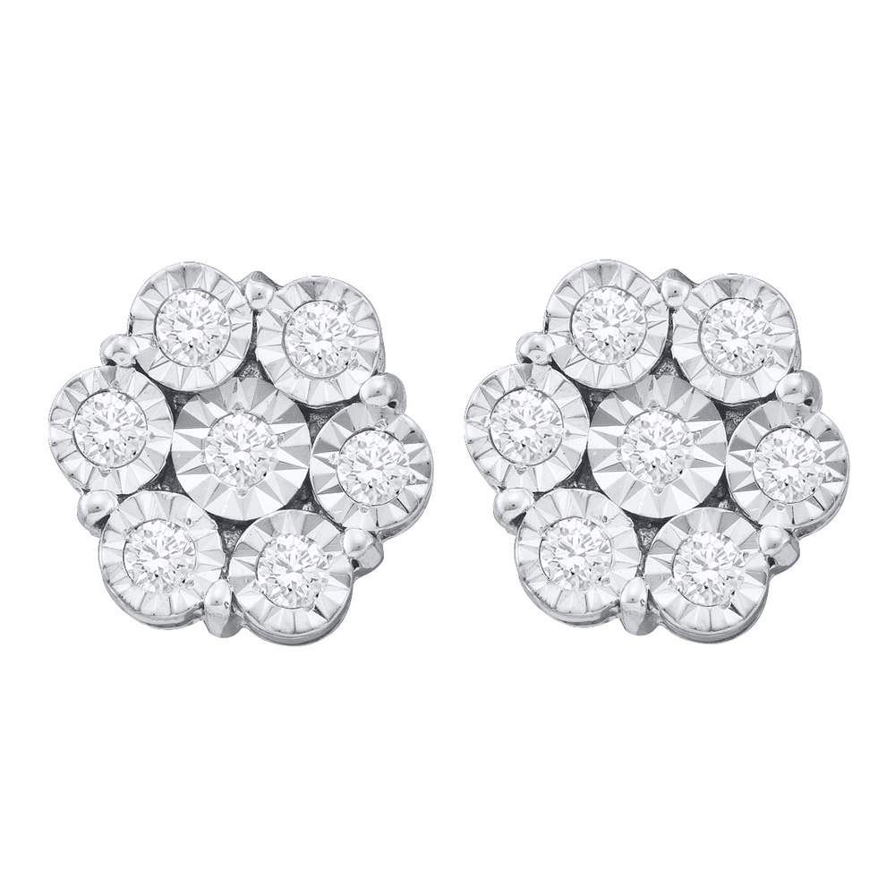 10kt White Gold Womens Round Illusion-set Diamond Flower Cluster Earrings 1.00 Cttw