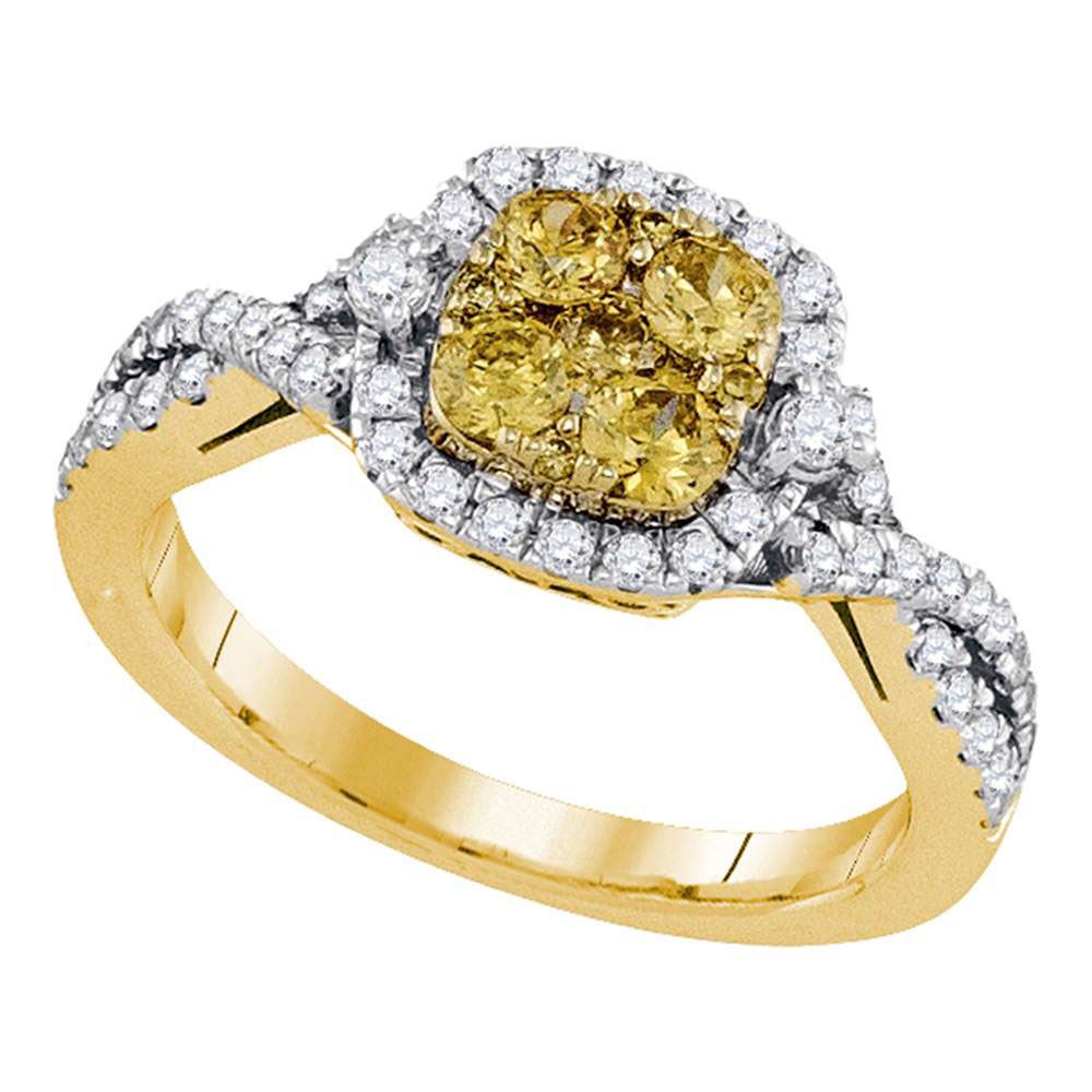 14kt Yellow Gold Womens Round Natural Canary Yellow Diamond Square Cluster Ring 1.00 Cttw