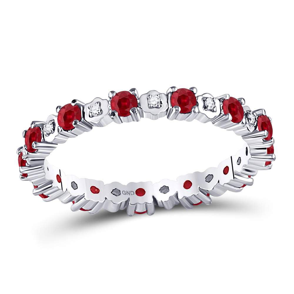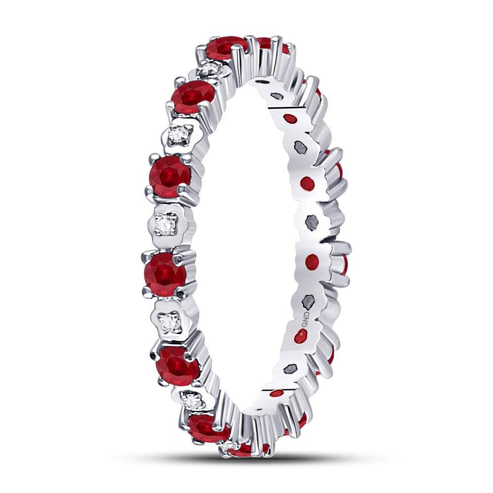 REF-27M3A ---- 1 CTW Round Ruby Diamond Eternity Stackable Ring 10kt White Gold