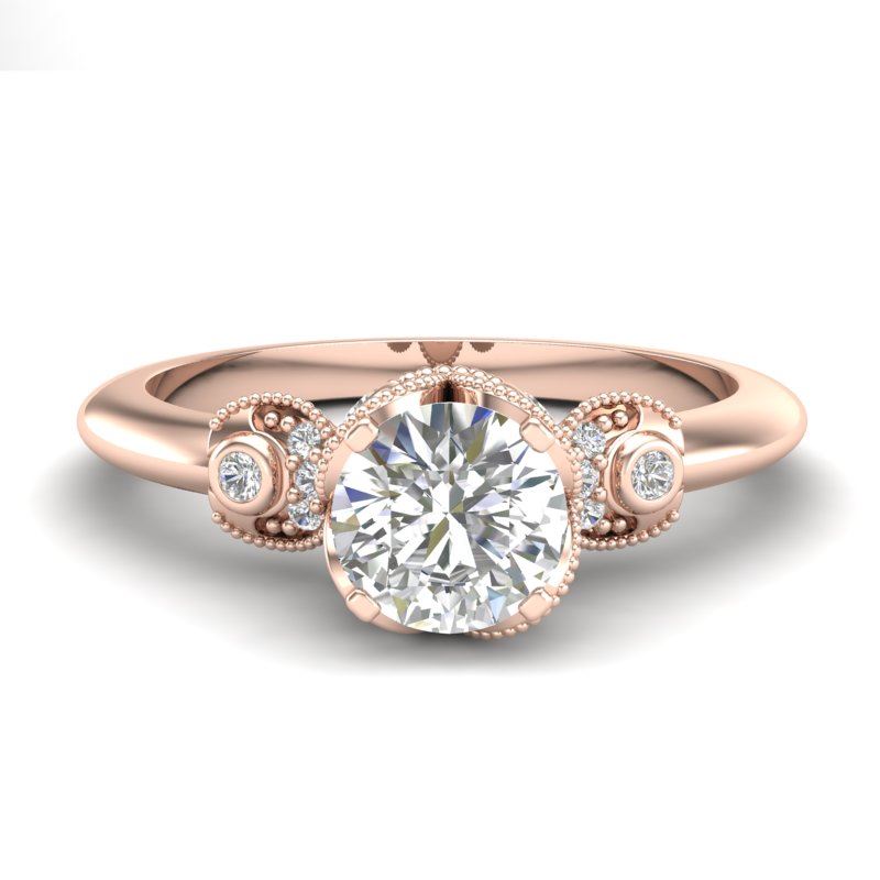 REF-157T5M -36852 ---- 1 CTW VS/SI Diamond Solitaire Art Deco Ring 18K Rose Gold ---- Luxury Designer Brand Ring Appraised at $9,550 Certificate Number US36852  18k Rose gold,  Ring Size is 7, Ring measuring approx. Uniform, weighing in total approx. 5.5 grams. Made in the USA and is stamped 18k, Main stone 0.57 carat total weight containing 1 pieces of H-J color with VS/SI quality Round shape cut Diamond , Stone #2 0.43 carat total weight containing 46 pieces of H-I color with  VS/SI quality Round shape cut Diamond