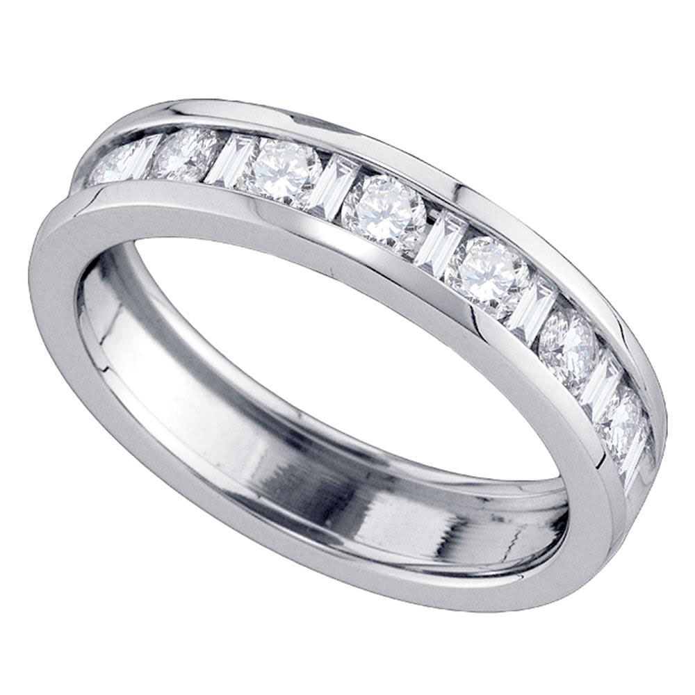 REF-114N5A - 1 CTW Womens Alternating Round Baguette Diamond Single Row Wedding Band Ring 14kt White Gold - REF-114N5A
