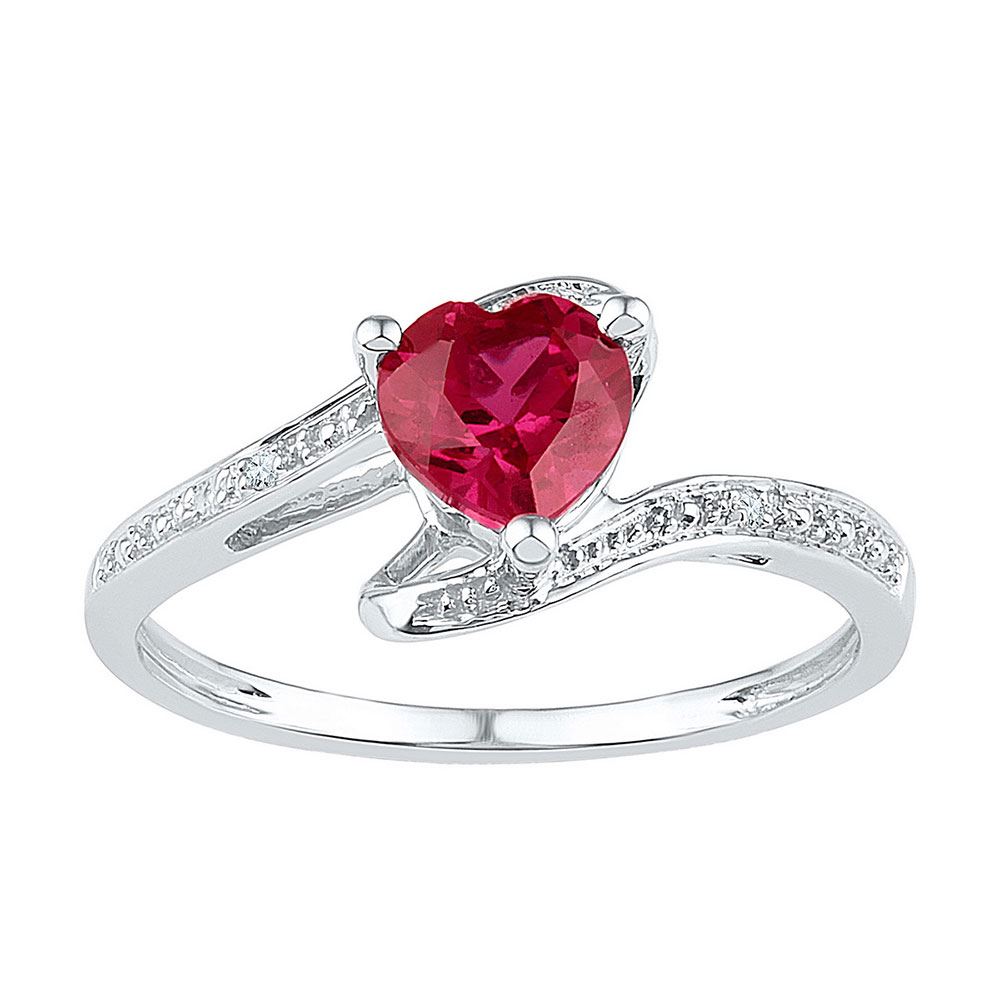 REF-12M2F - 1 CTW Womens Heart Lab-Created Ruby Solitaire Ring 10kt White Gold - REF-12M2F