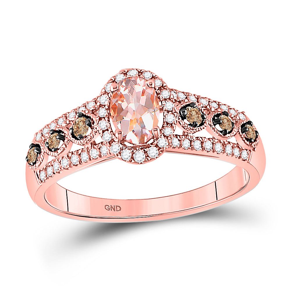 REF-47N6A - 1 CTW Womens Oval Morganite Brown Diamond Solitaire Ring 14kt Rose Gold - REF-47N6A