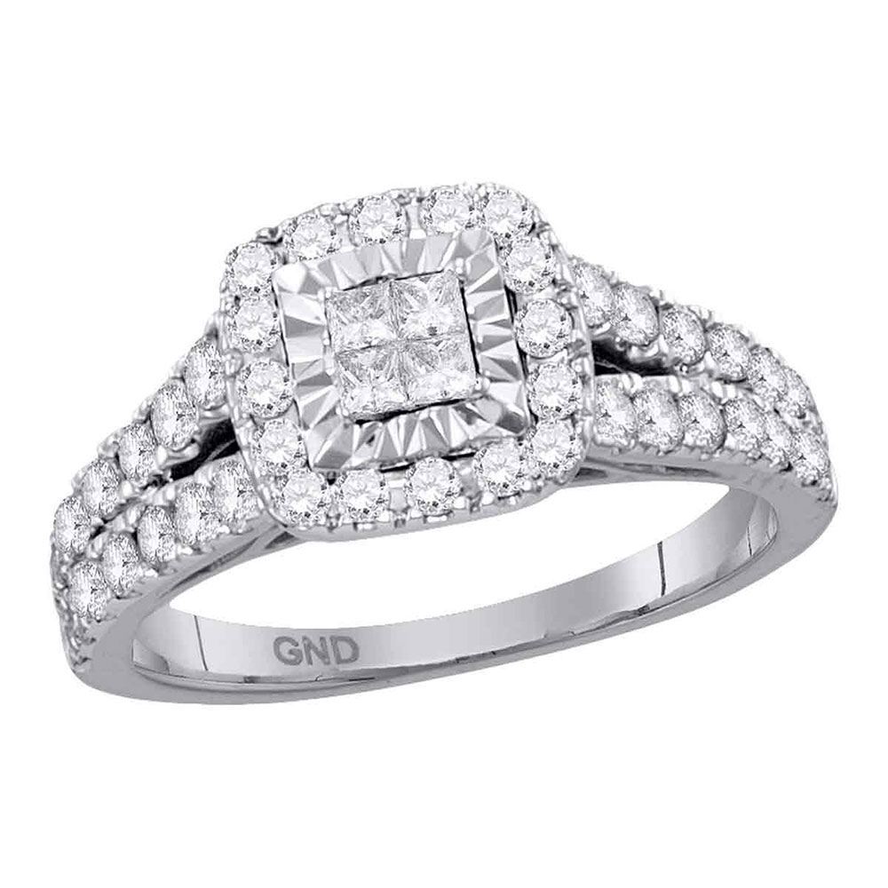 REF-92N3A - 1 CTW Womens Princess Diamond Cluster Ring 14kt White Gold - REF-92N3A