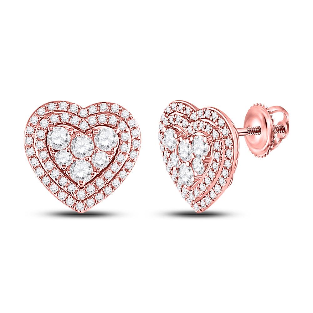 REF-88X5T - 1 CTW Womens Round Diamond Cluster Heart Earrings 14kt Rose Gold - REF-88X5T