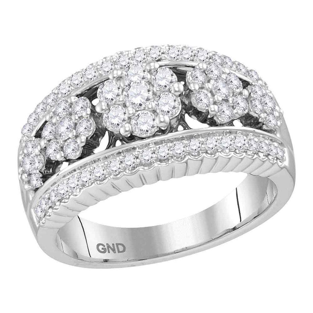 REF-87W8H - 1 CTW Womens Round Diamond Flower Cluster Ring 10kt White Gold - REF-87W8H