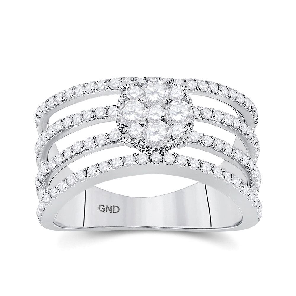 REF-88X5T - 1 CTW Womens Round Diamond Four Row Flower Cluster Ring 10kt White Gold - REF-88X5T