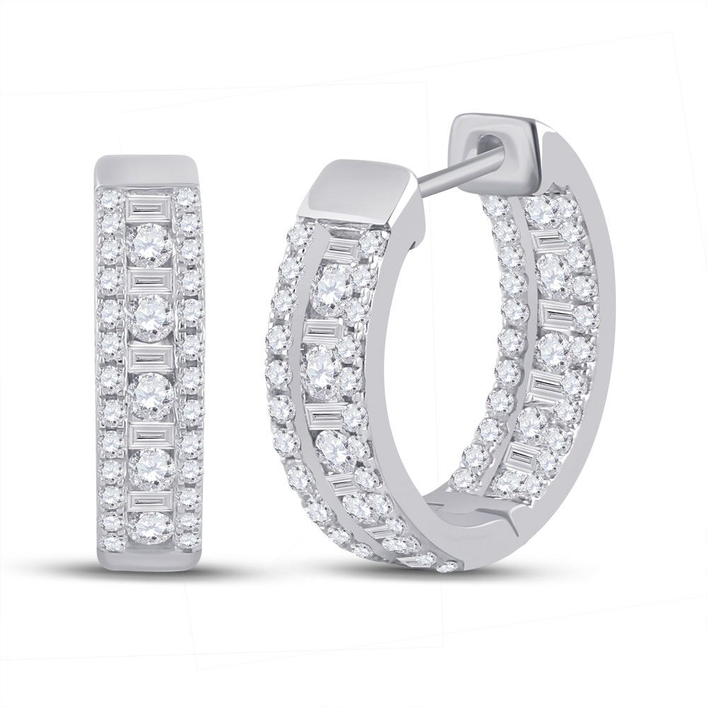 REF-88W5H - 1 CTW Womens Round Diamond Hoop Earrings 14kt White Gold - REF-88W5H