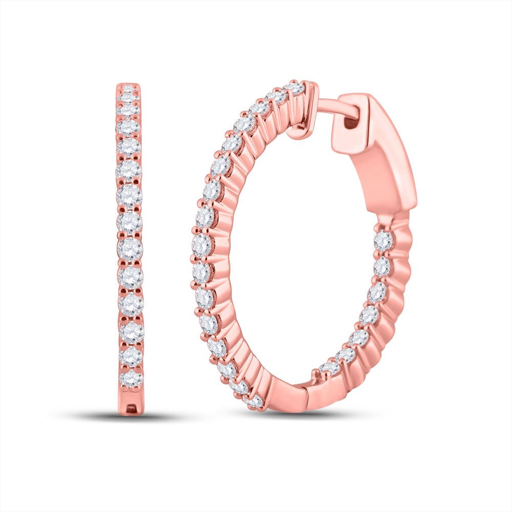 REF-74W9H - 1 CTW Womens Round Diamond Inside Outside Hoop Earrings 10kt Rose Gold - REF-74W9H