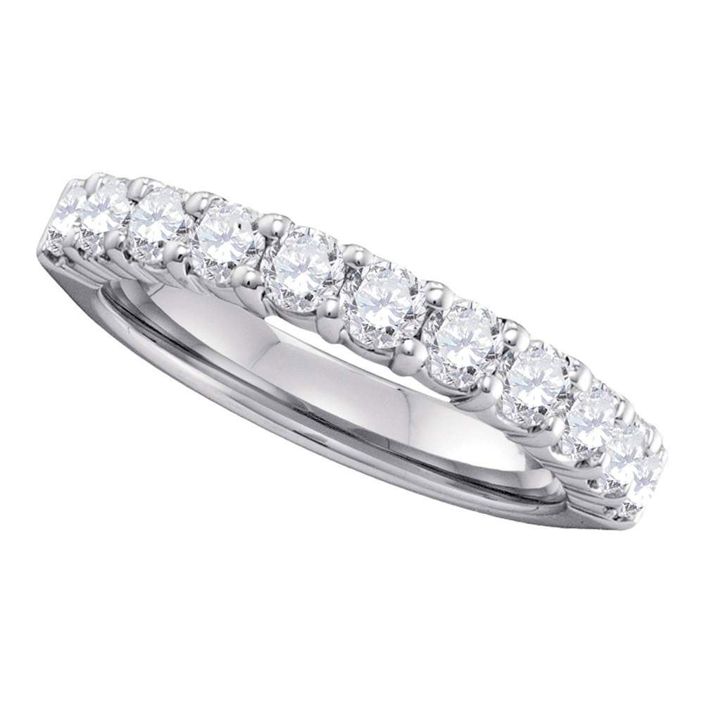REF-122H6R - 1 CTW Womens Round Pave-set Diamond Wedding Band Ring 14kt White Gold - REF-122H6R