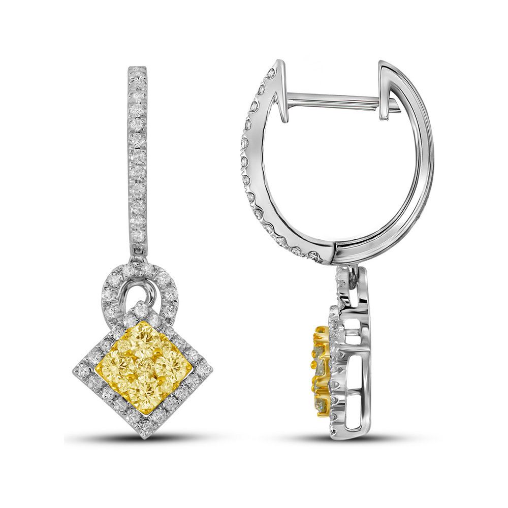 REF-134Y9X- SKU: GD109479 ---- 1 CTW Yellow Diamond Diagonal Cluster Earrings 14KT White Gold