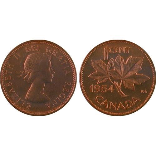 1¢ Canada 1937-39, 47, 49, 50 and 54 (7 coins, all MS64 Red).<Br>The 1937 is about 80% red, the 39 has light crescent toning on the reverse, the 47 and 49 are over 90% red, and the others are 100