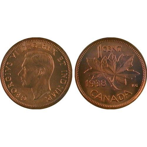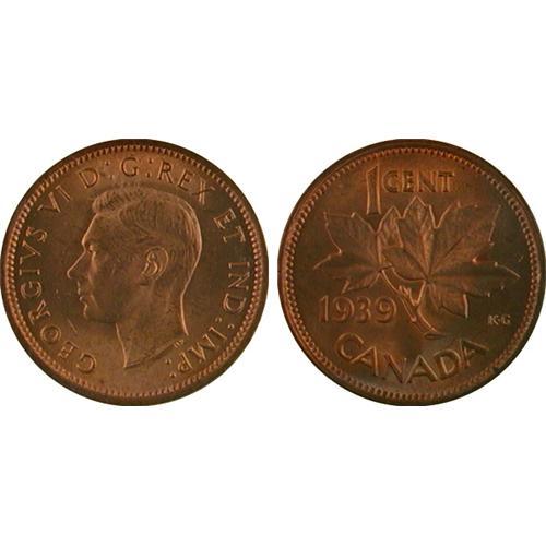 1¢ Canada 1937-39, 47, 49, 50 and 54 (7 coins, all MS64 Red).