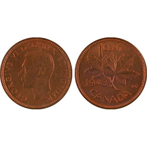1¢ Canada 1943 MS64 ICCS<Br>Red (99+% Red)