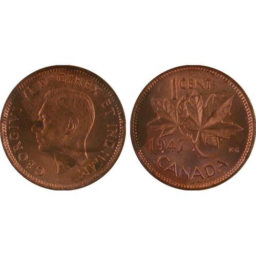 1¢ Canada 1947ML MS64 ICCS<Br>Red; Pointed 7 (90+% original red)