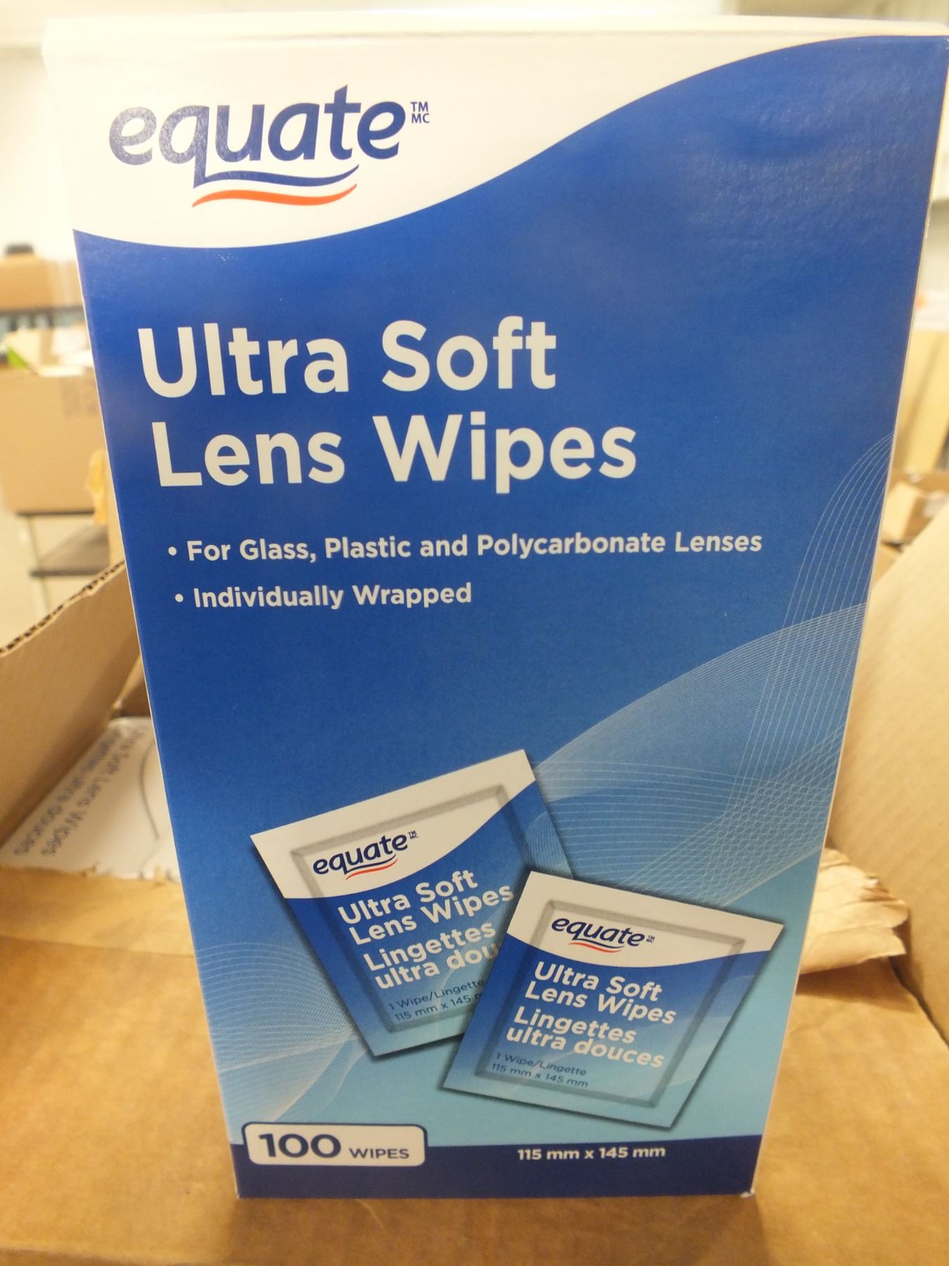 1 Case Of Equate Ultra Soft Lens Wipes, 10 boxes in the case, 1000 wipes altogether...freight claim...new