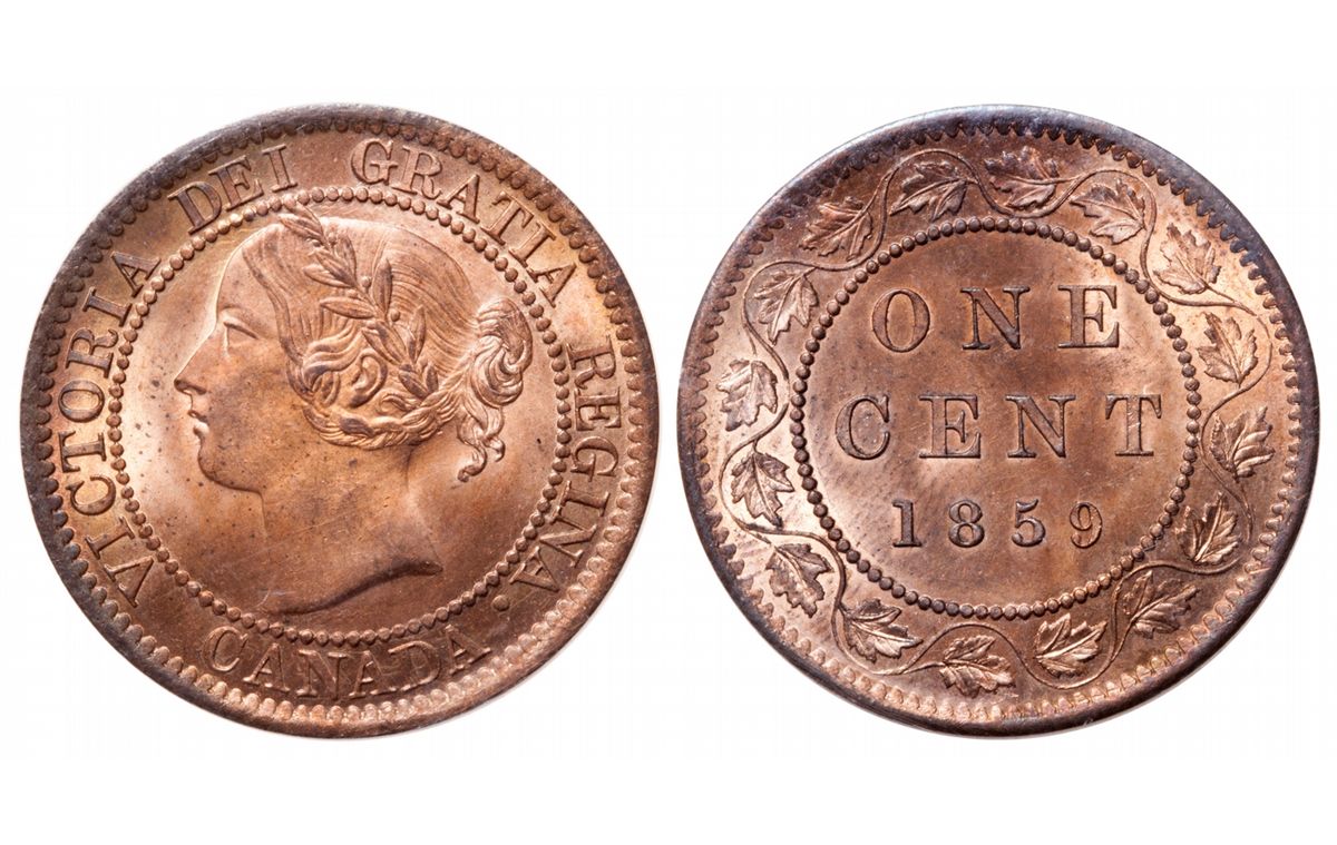 1 Cent. 1859. Narrow 9. ICCS graded Superb Gem Uncirculated-66 Red. The humble 1859 narrow 9 cent, the most common variety of the year, is here elevated to the peak of rarity in this superb gem mint state example. Exhibits frosty pale rose-red to orange colour, ample lustre, and only the first traces of mellow toning. 95% red overall. Every detail is clearly and fully struck and the surfaces are near flawless. Tied 1 of only 3 finest graded by ICCS.
