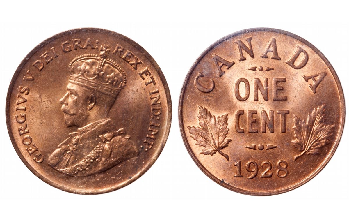 1 Cent. 1928. ICCS graded Gem Uncirculated-65 Red. Fully red and lustrous. None graded higher by ICCS.