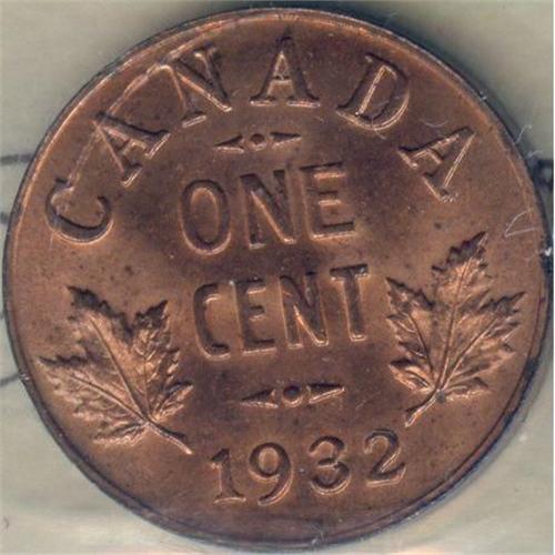 1 Cent 1932, graded ICCS MS-64 Red. 100% Red, near Gem.