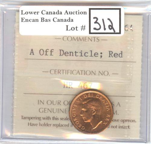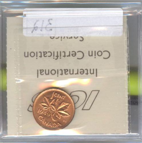 1 Cent 1949 A Off Denticle ICCS certified MS-64; Red.