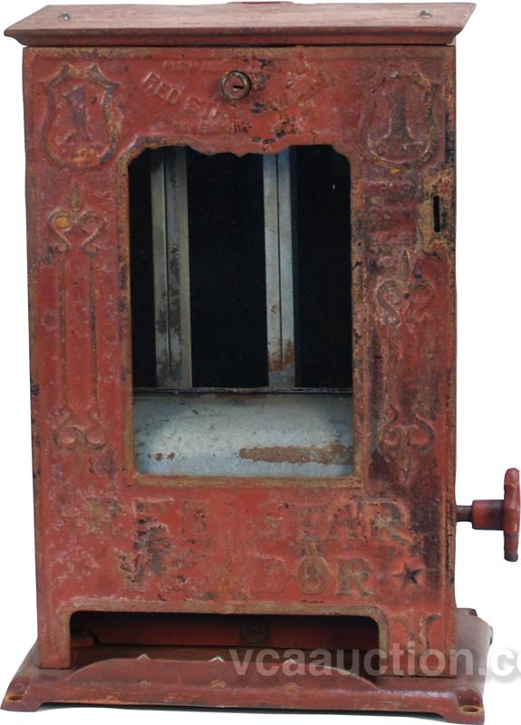 1 Cent Cast-Iron "Red Star Vendor" 3-Column Match Book Vending Machine by Red Star Sanitary Vending Machine Co. pat. Aug. 23rd, 1904 very rare machine in original working condition