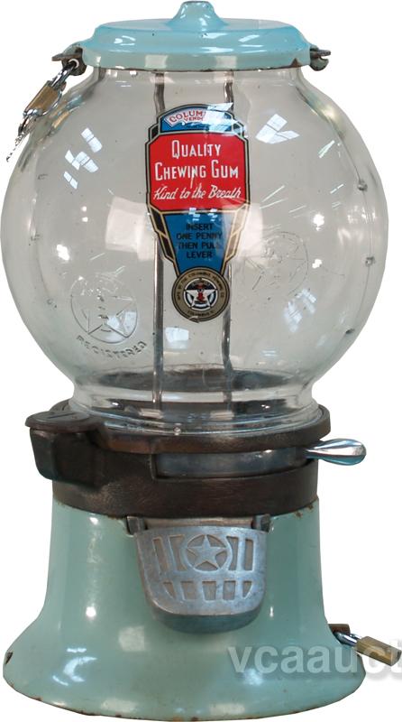 1 Cent Columbus Model M Bulk Vending Machine w/ green porcelain top & base w/ keys
