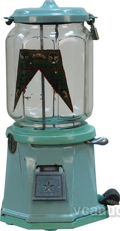 1 Cent Columbus Vendor Countertop Porcelain Base Bulk Vending Machine w/ original decal, w/ keys