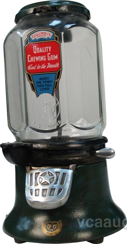 1 Cent Countertop Columbus Model M Gumball Vending Machine c1928 w/ barrel lock & keys