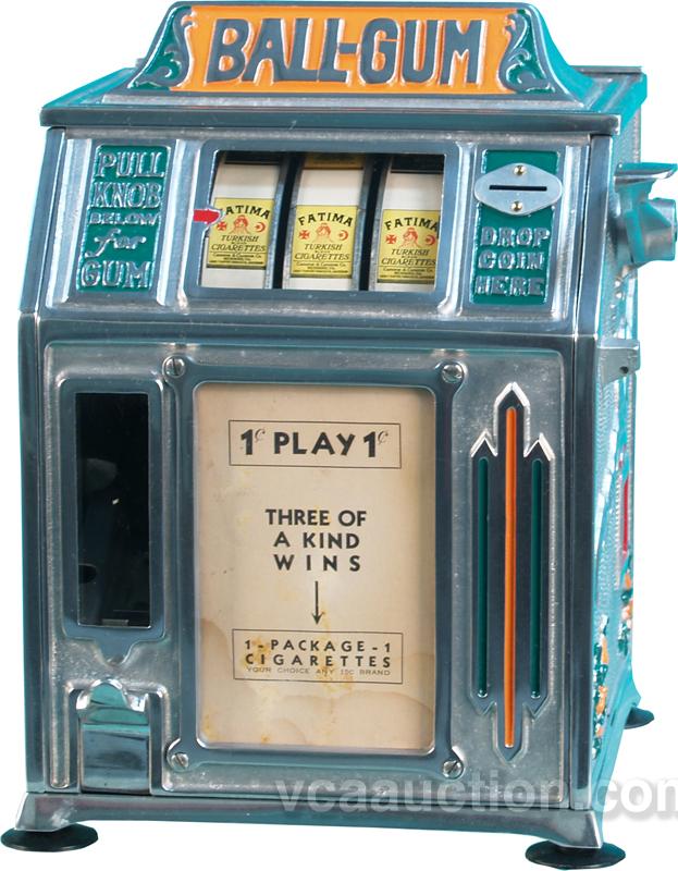 1 Cent Countertop Dandy Vender "Ball Gum" Cigarette 3-Reel Gumball Trade Stimulator w/ keys