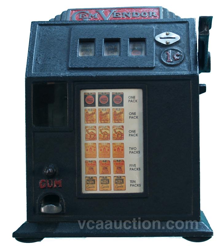 1 Cent Countertop "Gem Vendor" Cigarette 3-Reel Gumball Trade Stimulator, all original w/ keys