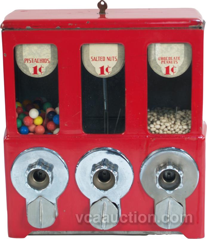 1 Cent Countertop "New Era Vendor" 3-Column Vending Machine by Penny King, rare w/ keys