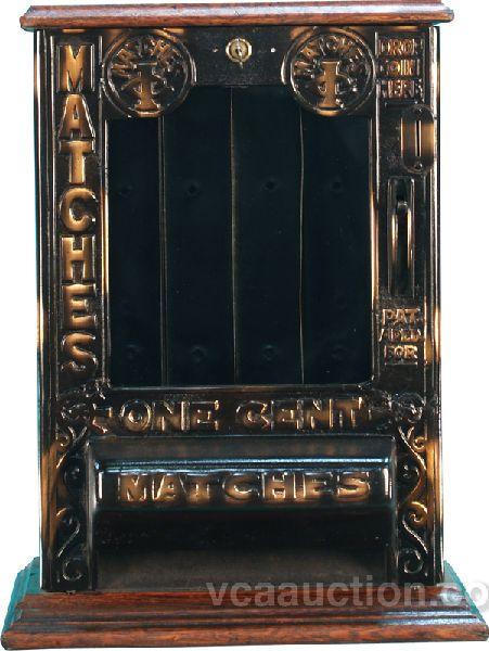 1 Cent Countertop Wood & Embossed Metal Krema 1009 Matches Vending Machine, great condition w/ keys