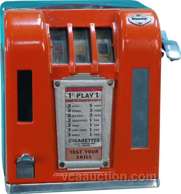 1 Cent Countertop "Zepher" Groetchen Cigarette 3-Reel Gumball Trade Stimulator (as is) w/ keys