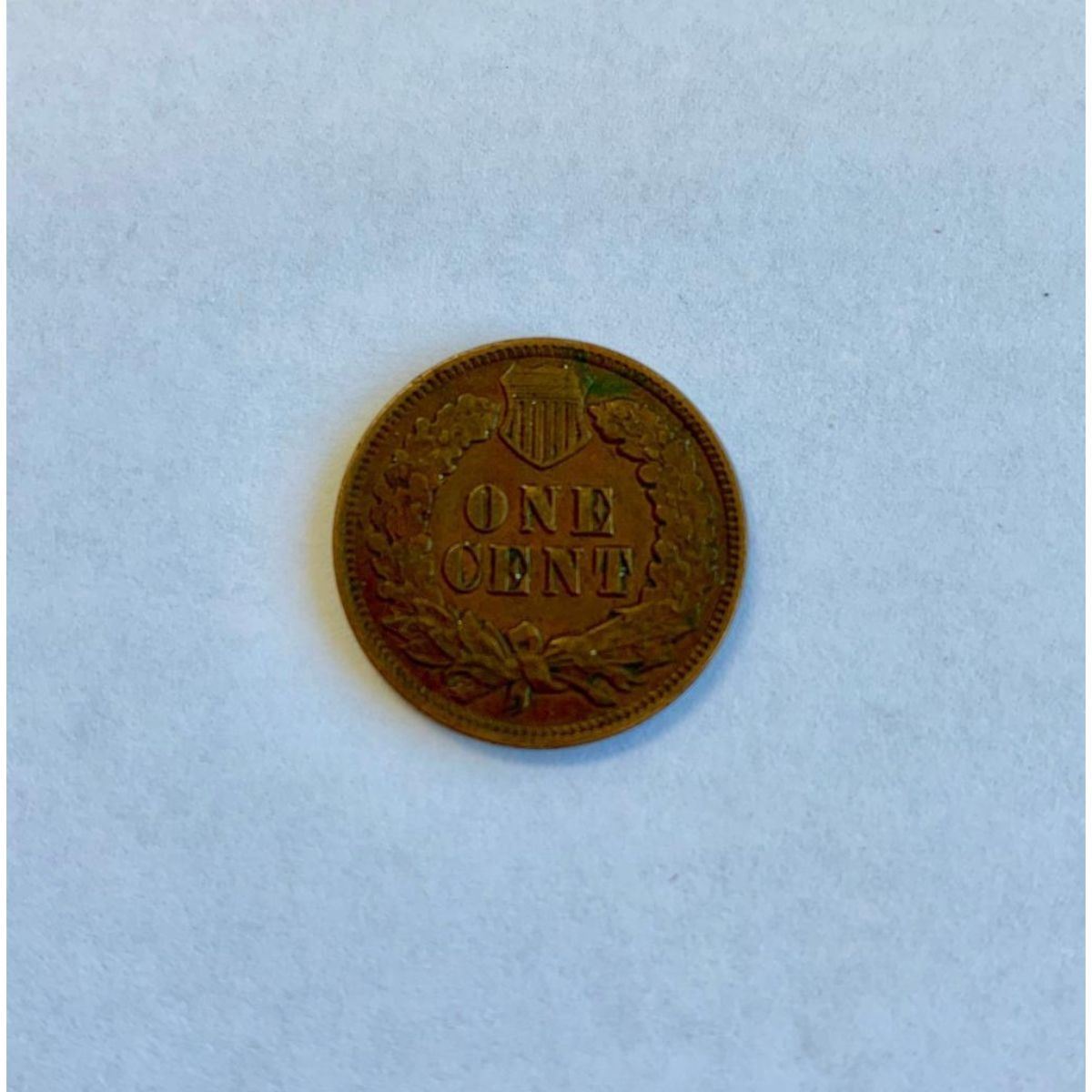 Obverse Liberty with Indian headdress bearing the word Liberty. Lettering: UNITED STATES OF AMERICA LIBERTY 1901 Engraver: James Barton Longacre Reverse Shield and wreath with lettering centered Mint-mark below wreath (1908-1909 only) Lettering: ONE CENT Engraver: James Barton Longacre Edge Smooth Specifications Country: United States Type: Standard circulation coin Years: 1864-1909 Value: 1 Cent 0.01 USD = 0.013 CAD Currency: Dollar (1785-date) Composition: Bronze Weight: 3.11 g Diameter: 19 mm Shape: Round
