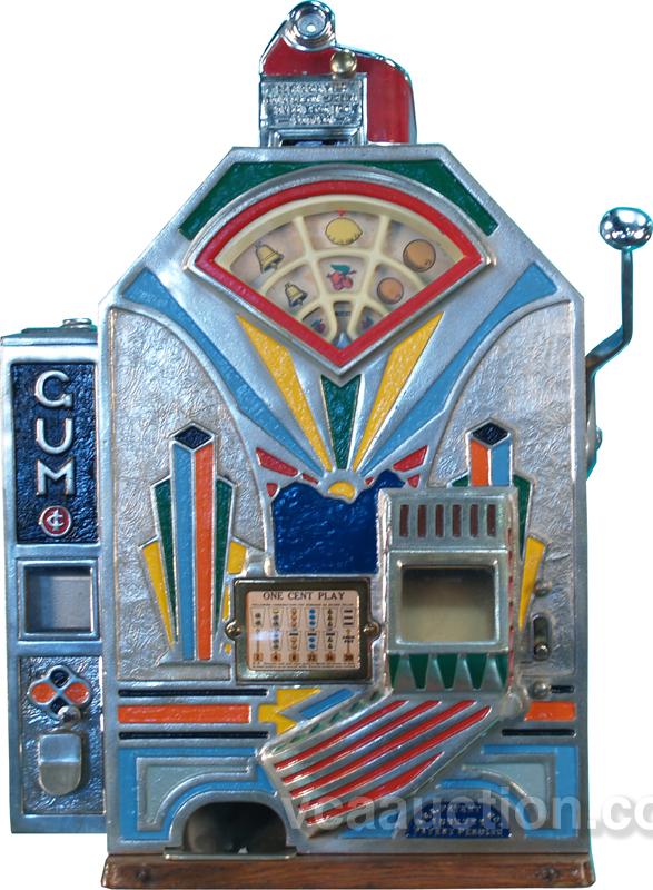 1 Cent Jennings "Little Duke" Jackpot Slot Machine w/ side gum vender w/ keys