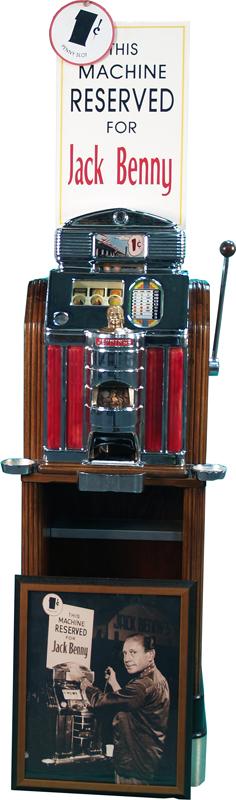 1 Cent Jennings Sun Chief Super Deluxe Console Slot Machine c1949, w/ keys. From the Flamingo Hotel & Casino reserved for Jack Benny. Comes with picture of Jack Benny playing the slot machine and the sign that was posted on the slot machine.