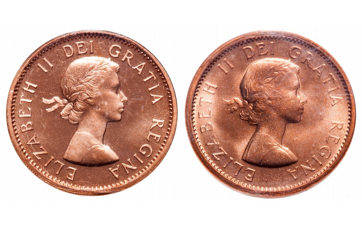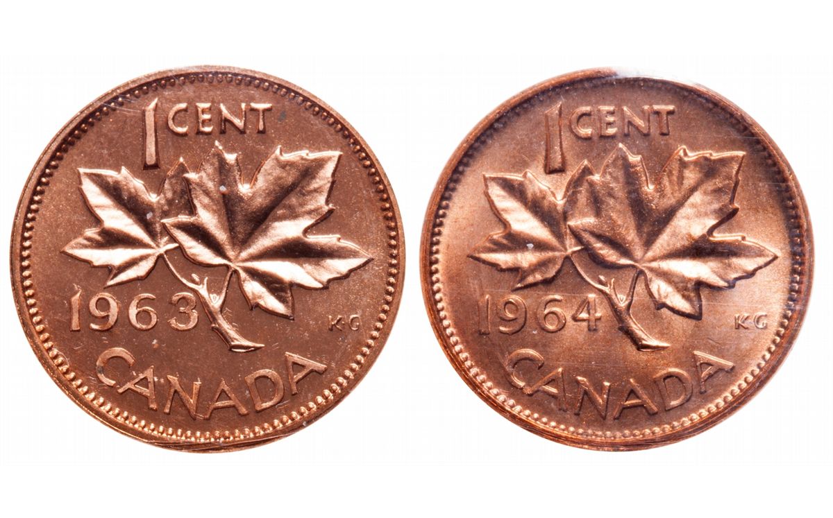 1 Cent. Lot of two (2) ICCS graded Elizabeth II cents, including 1963 PL-67 Red, Heavy Cameo; 1964 MS-66 Red. Lot of Two (2) pcs.