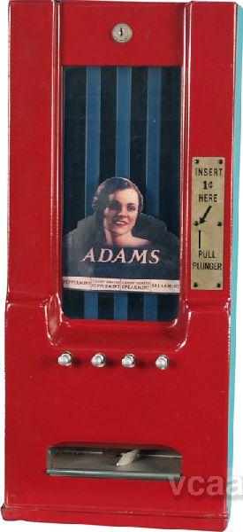 1 Cent Metal Wallmount "Adams" Chicklets Gum Vending Machine, has 4 sections for gum w/ key