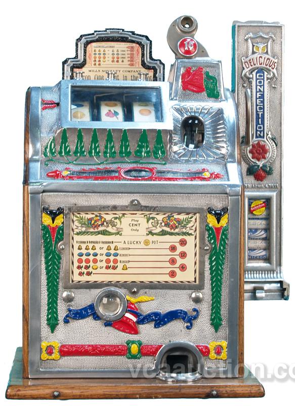 1 Cent Mills Gooseneck Slot Machine c1926 w/ skill stops & side mint vender w/ keys