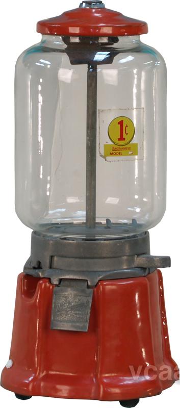 1 Cent Northwestern 33 Gumball Vending Machine c1933 w/ red porcelain top & base w/ keys