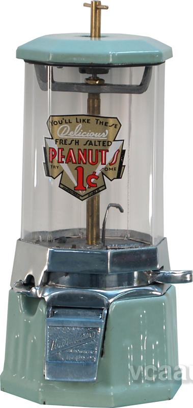1 Cent Northwestern 33 Junior Bulk Vending Machine c1933 w/ green porcelain top & base w/ skinny short globe