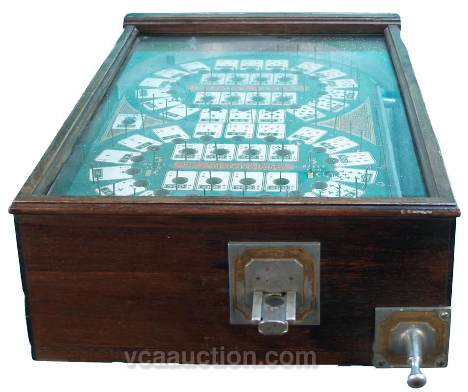 1 Cent Play-Boy Countertop Pinball Machine, surface shows playing cards, excellent condition